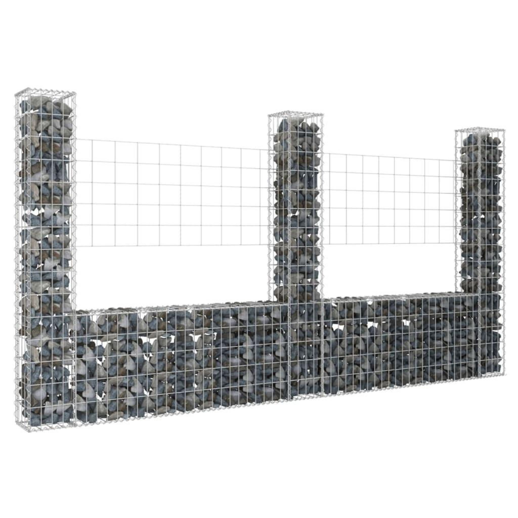 Panier de gabion en forme de U avec 3 poteaux Fer 260x20x150 cm
