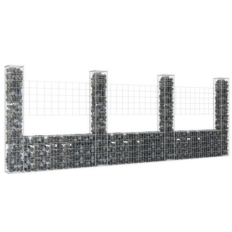 Panier de gabion en forme de U avec 4 poteaux Fer 380x20x150 cm