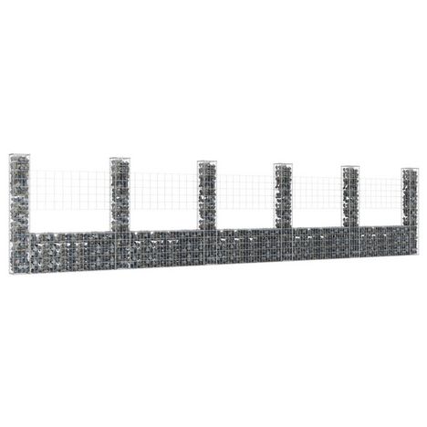 Panier de gabion en forme de U avec 6 poteaux Fer 620x20x150 cm