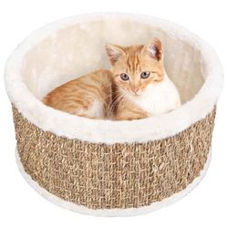 Cet adorable panier pour le chat fournit un lieu de couchage sur et confortable pour vos beaux chats ! La peluche ultra-doux offre un grand confort, et l'herbe marine environnante permet a vos chats d'aiguiser leurs griffes aussi. Le lit est robuste et leger a transporter. Il est facile a nettoyer e