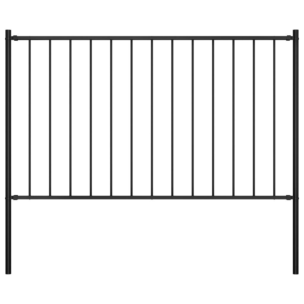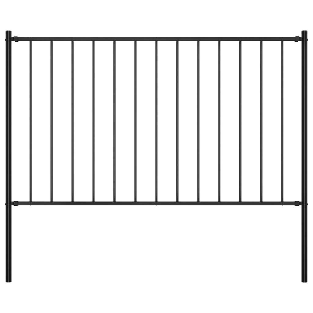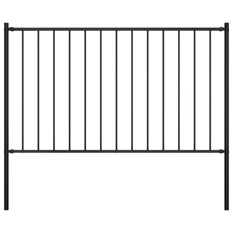 Panneau cloture et poteaux Acier enduit poudre 1,7x1,25 m Noir