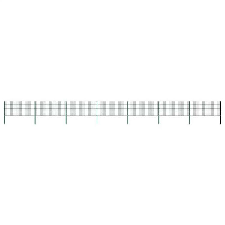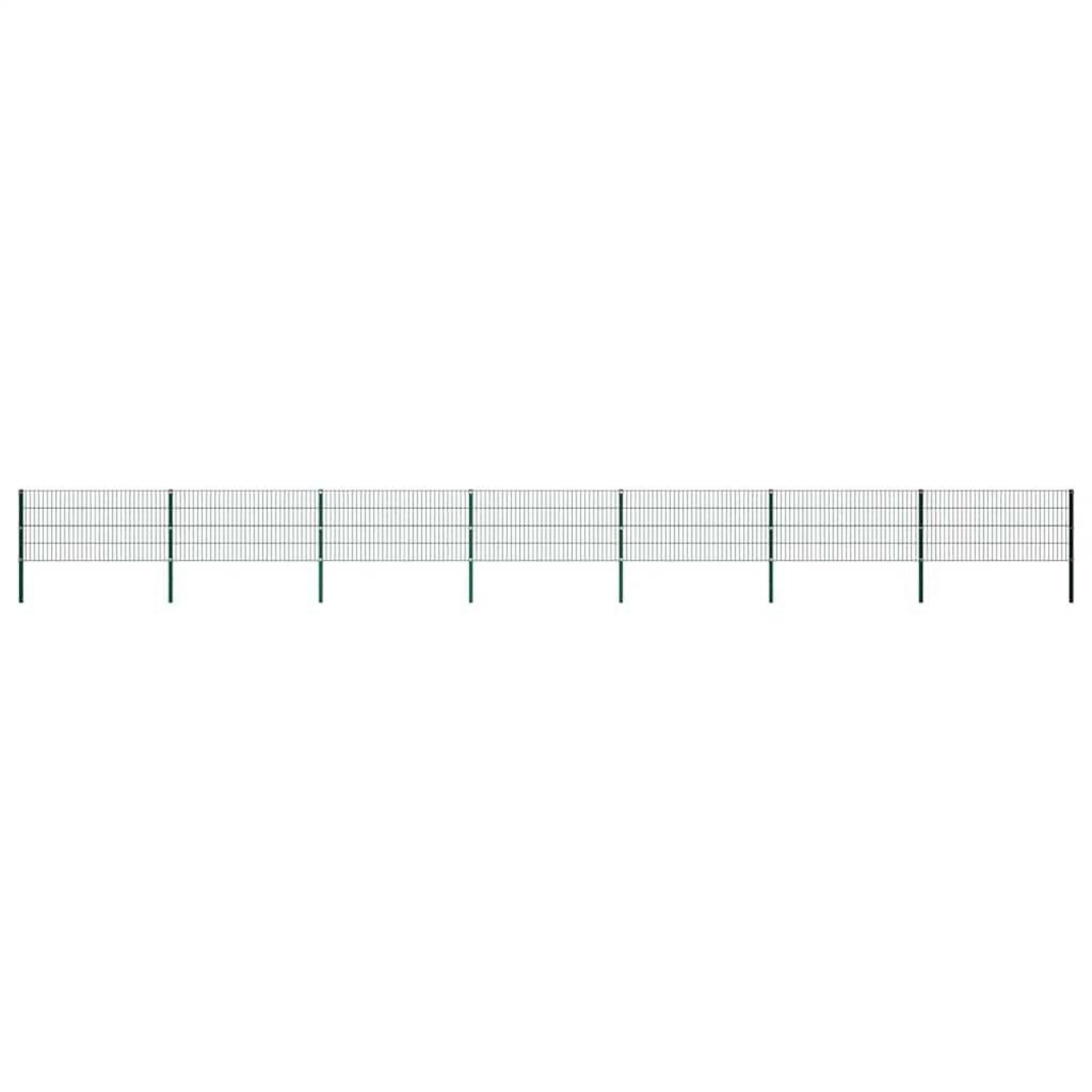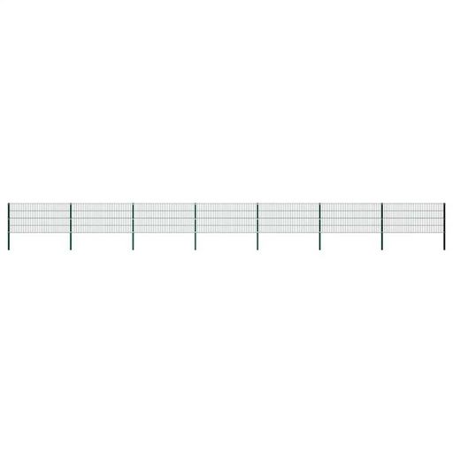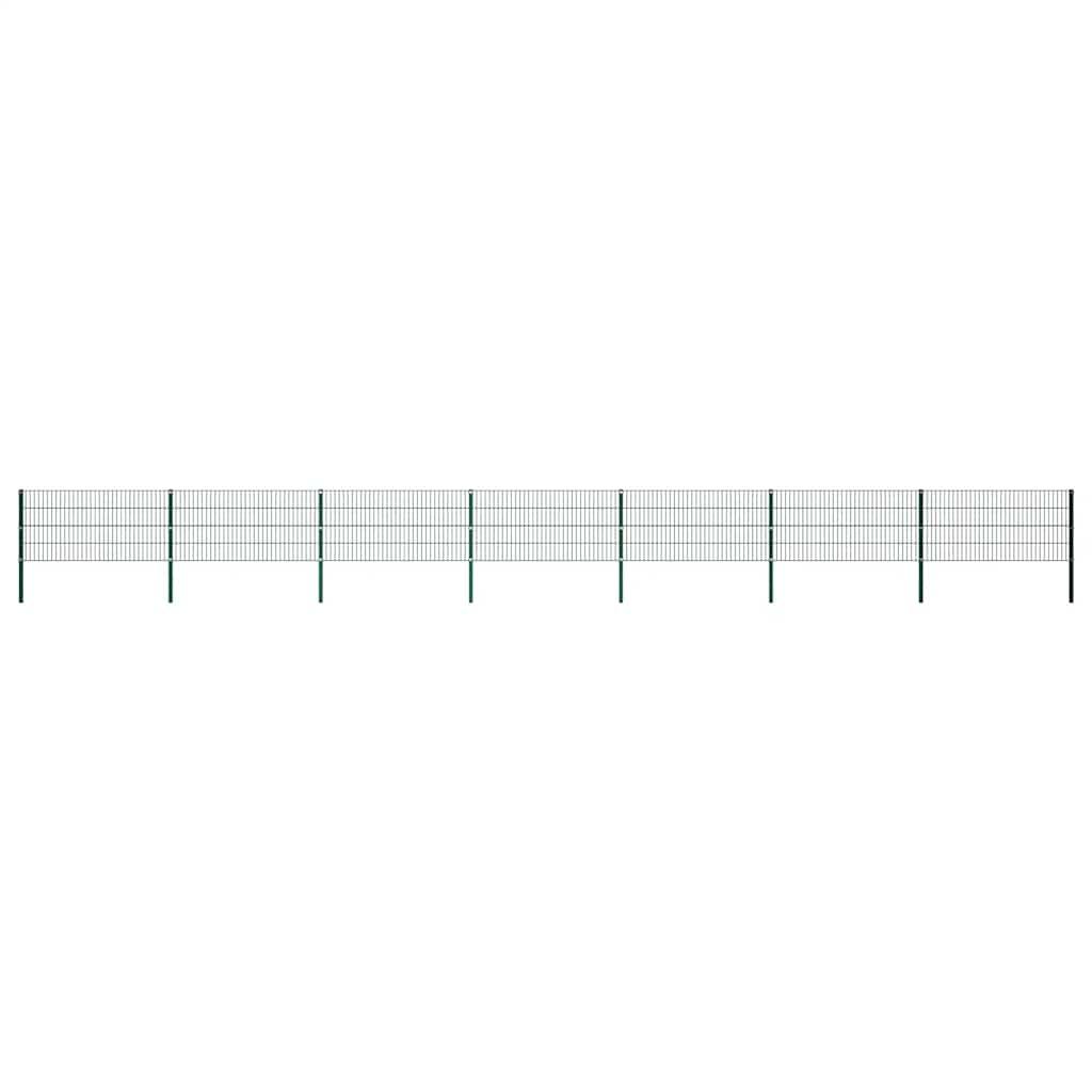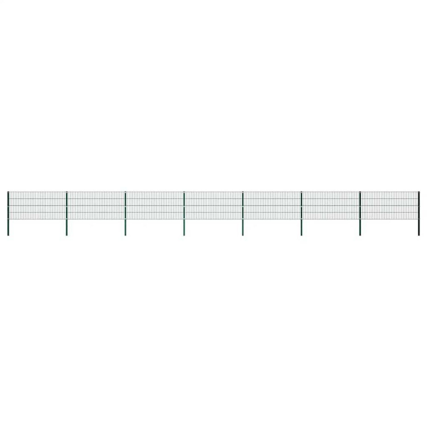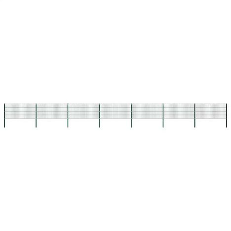 Panneau de cloture avec poteaux en fer 1212 x 80 cm Vert