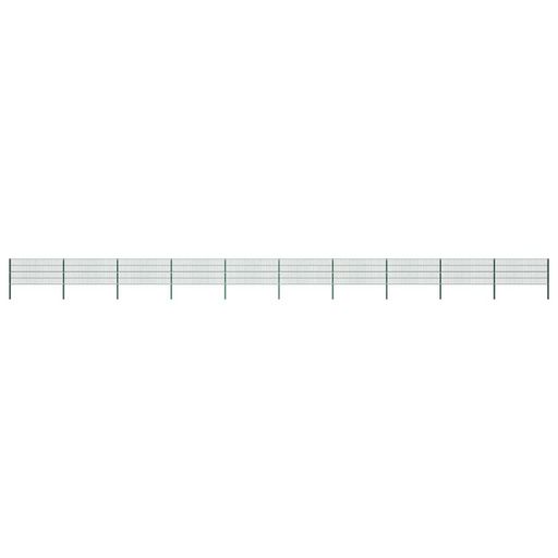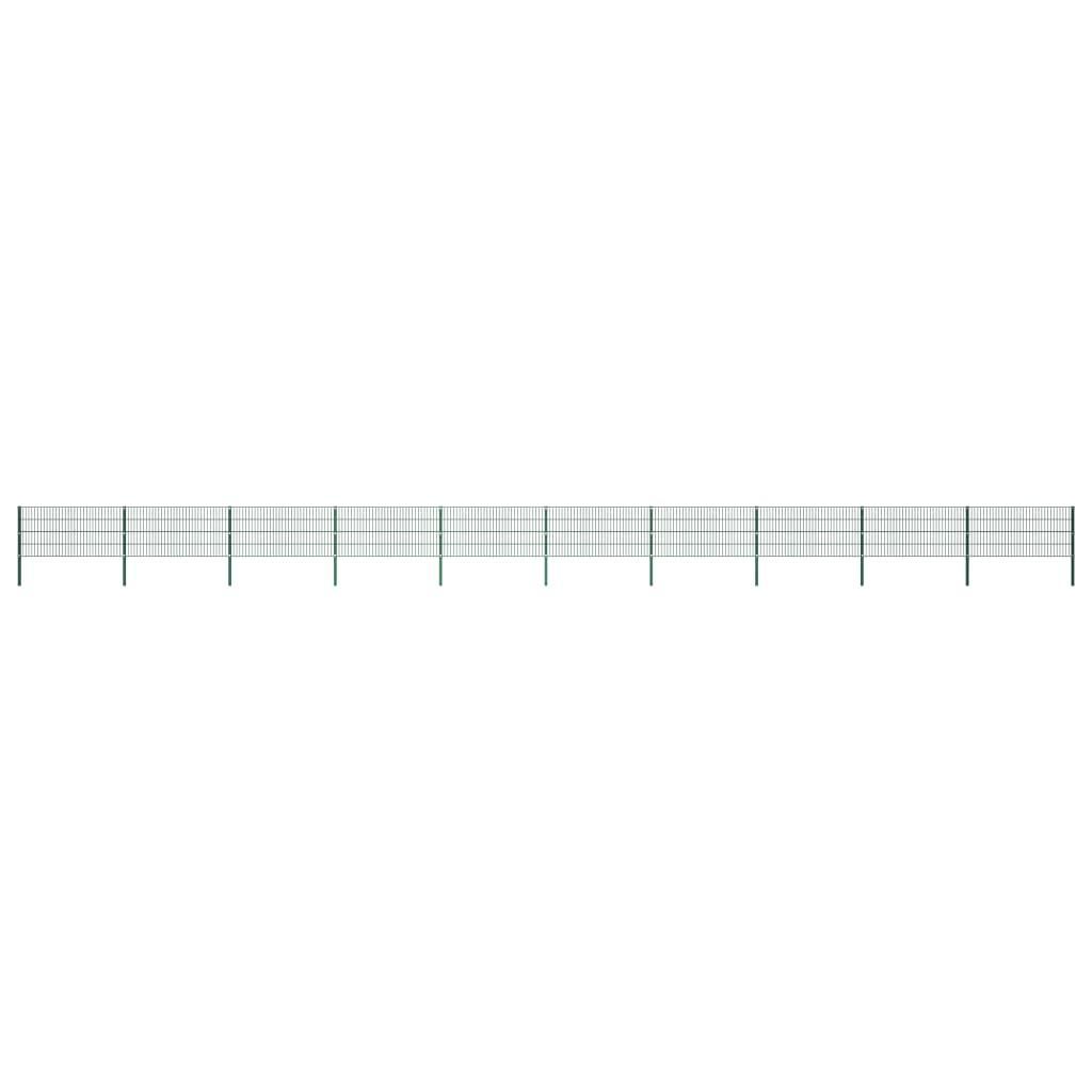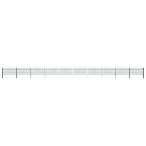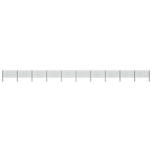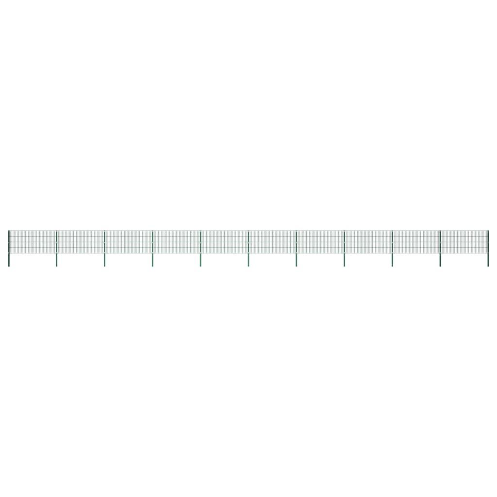 Panneau de cloture avec poteaux en fer 1730 x 80 cm Vert
