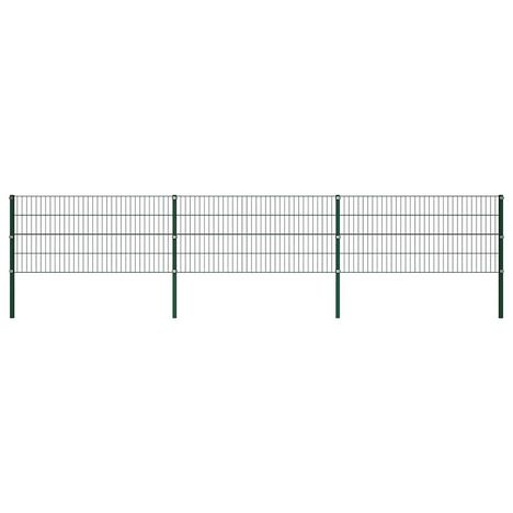 Panneau de cloture avec poteaux en fer 522 x 80 cm Vert