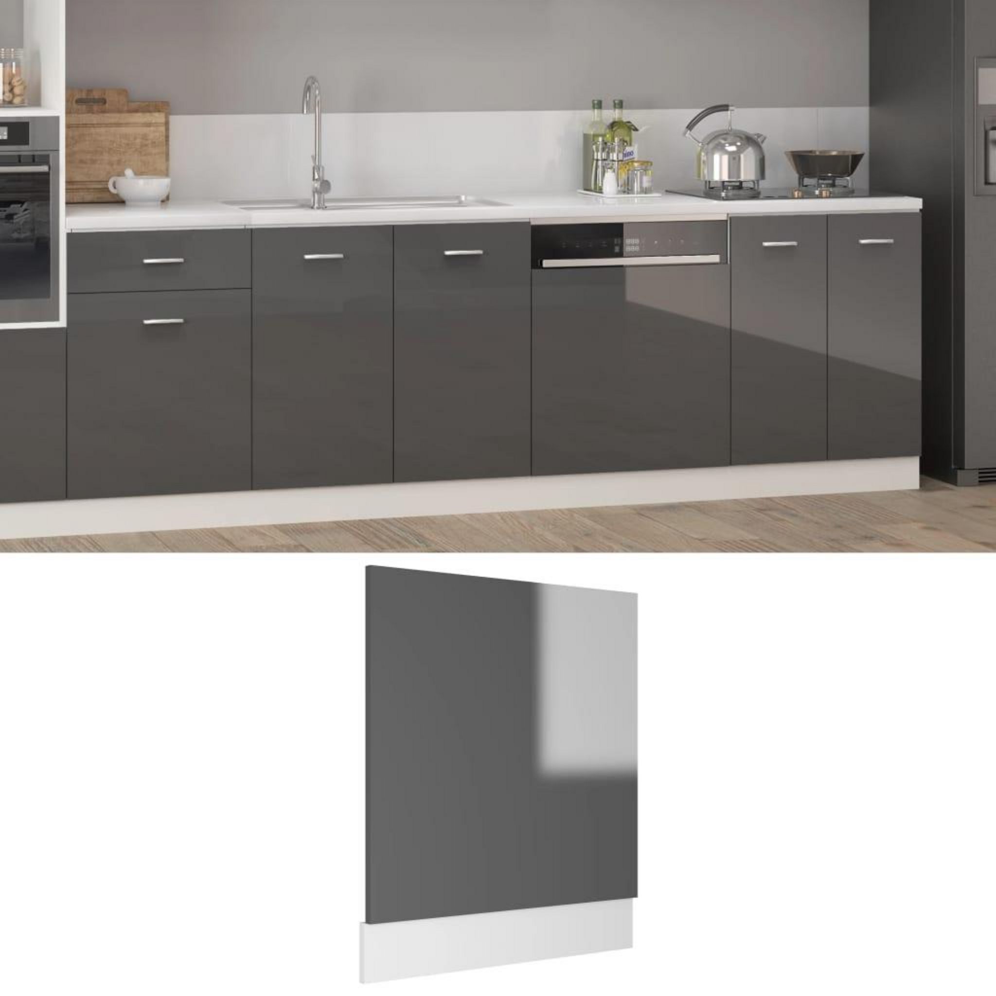 Panneau de lave-vaisselle Gris brillant Bois d'ingenierie