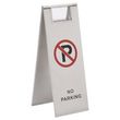 Reperez les dangers temporaires ou affichez des messages vitaux a n'importe quel endroit a l'aide de ce panneau pliable recto verso « No Parking ». Ce panneau est fabrique en acier inoxydable, qui est resistant a la rouille et facile a nettoyer. Deux panneaux de message s'adaptent de chaque cote. Le