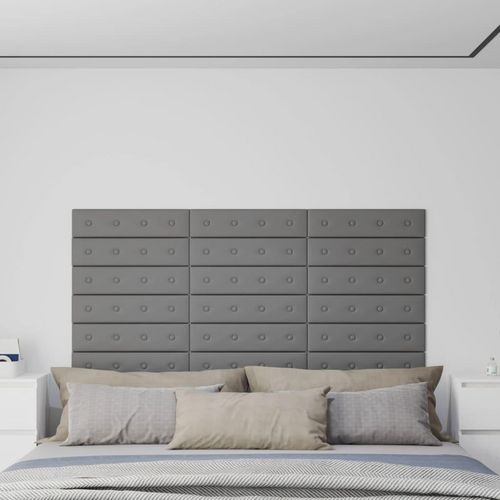 Panneaux muraux 12 pcs Gris 60x15 cm Similicuir 1,08 m^2