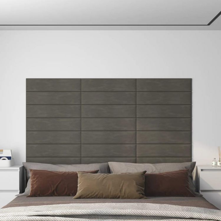 Panneaux muraux 12 pcs Gris fonce 60x15 cm Velours 1,08 m²