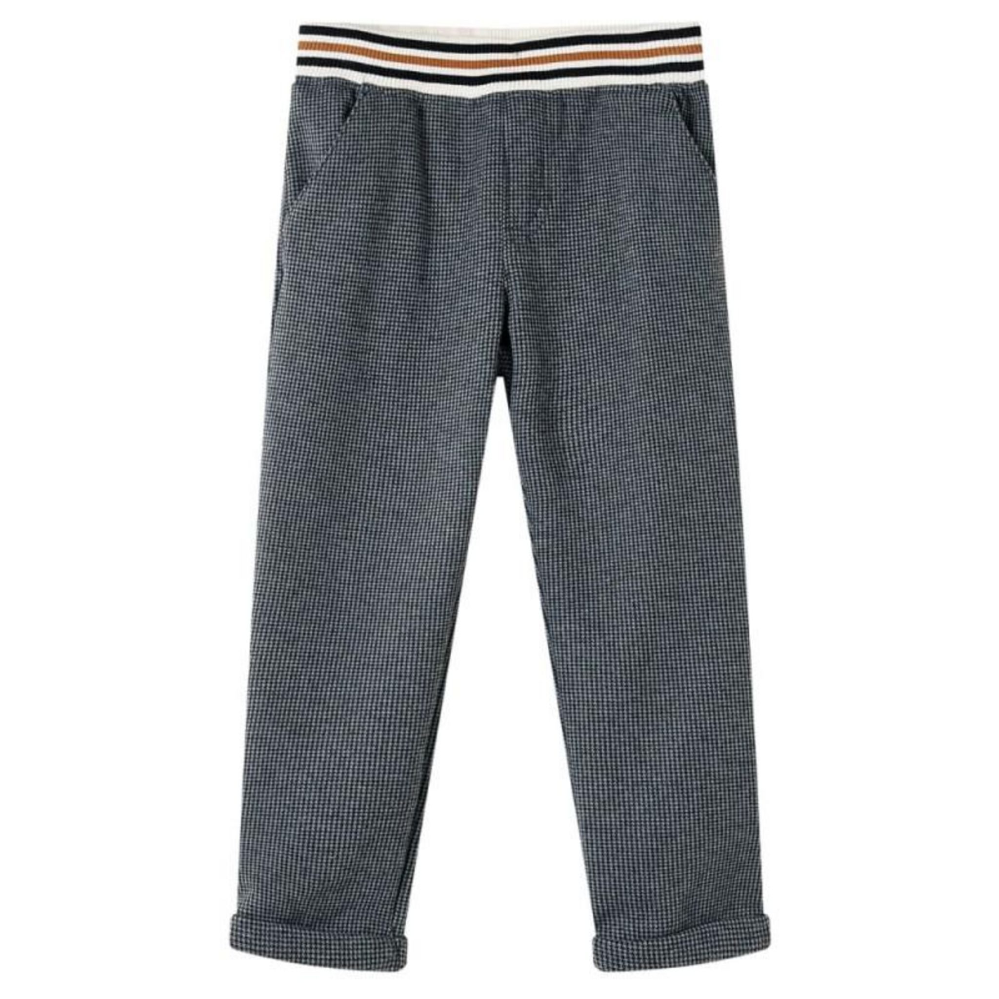 Ce pantalon est équipé d'une ceinture élastique, permettant une mise facile et confortable pour les enfants. De plus, il comporte deux poches avant pratiques pour ranger les petites affaires. Le matériau utilisé assure une bonne élasticité, permettant aux enfants de bouger librement tout en gardant leur pantalon bien en place.