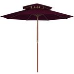 Parasol a deux etages avec mat en bois rouge bordeaux 270 cm