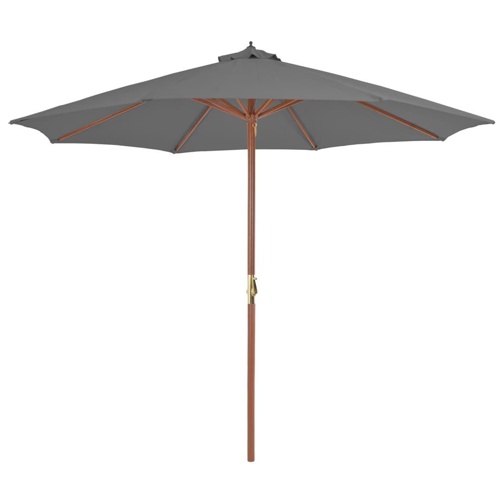 Parasol d'exterieur avec mat en bois 300 cm anthracite