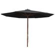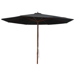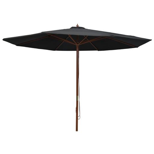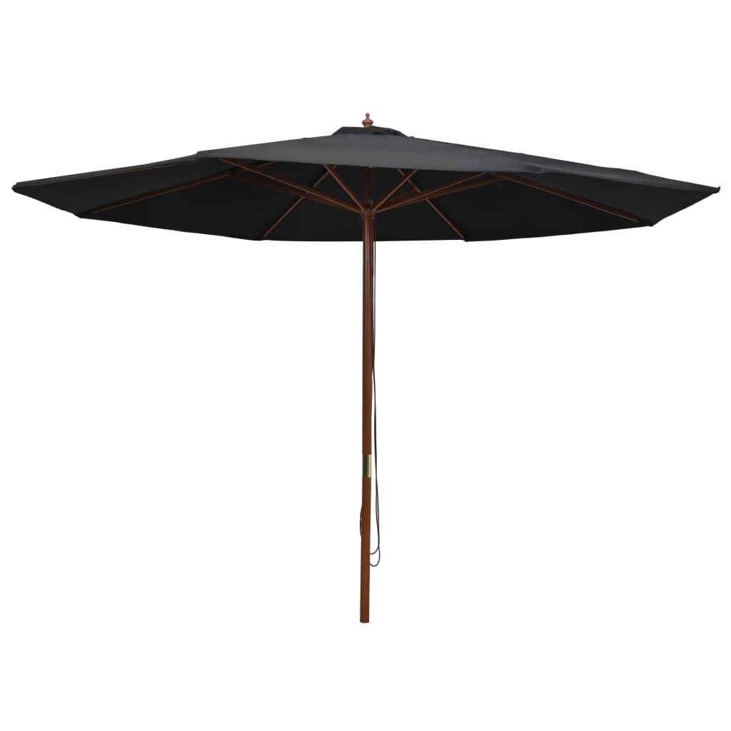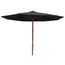 Parasol d'exterieur avec mat en bois 350 cm Noir