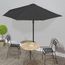 Fabriquee en polyester anti-UV et anti-decoloration, la couverture de parasol vous offre une protection optimale contre le soleil et est facile a nettoyer. Avec un diametre de mat de 38 mm, il pourrait etre monte sur le support ou au milieu de tables avec trou. Sa forme demi-ronde ajoute egalement au charme unique du parasol. Le mat en aluminium resistant, ainsi que les 5 nervures en acier robustes, rendent le parasol tres stable et durable. Le parasol de jardin peut etre facilement ouvert et ferme grace au mecanisme a manivelle.