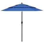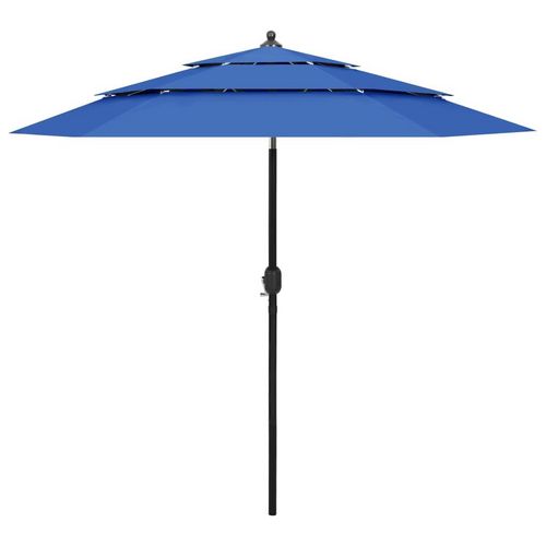 Parasol de jardin a 3 niveaux avec mat en aluminium bleu azure