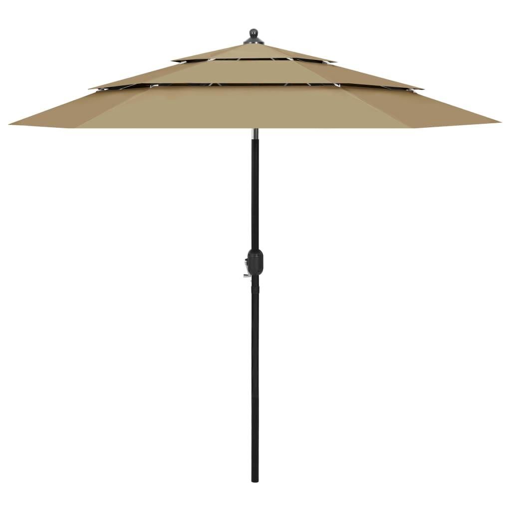 Parasol de jardin a 3 niveaux avec mat en aluminium taupe 2,5 m