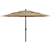 Parasol de jardin a 3 niveaux avec mat en aluminium taupe 3,5 m