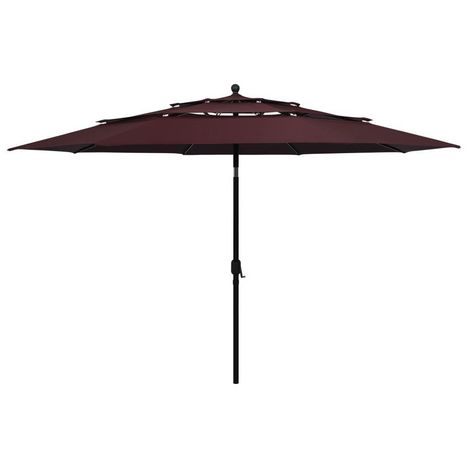 Parasol de jardin a 3 niveaux mat en aluminium rouge bordeaux
