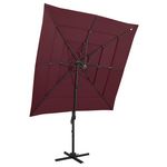 Parasol de jardin a 4 niveaux mat en aluminium rouge bordeaux