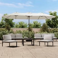 Parasol de jardin a double tete avec LED blanc sable 449x245 cm