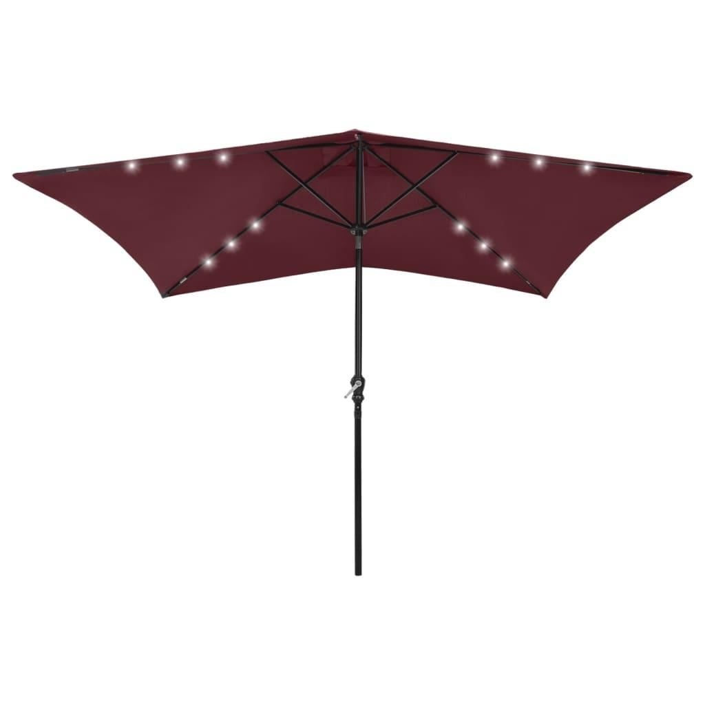 Parasol de jardin avec LED et mat en acier rouge bordeaux 2x3 m