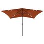Parasol de jardin avec LED et mat en acier terre cuite 2x3 m
