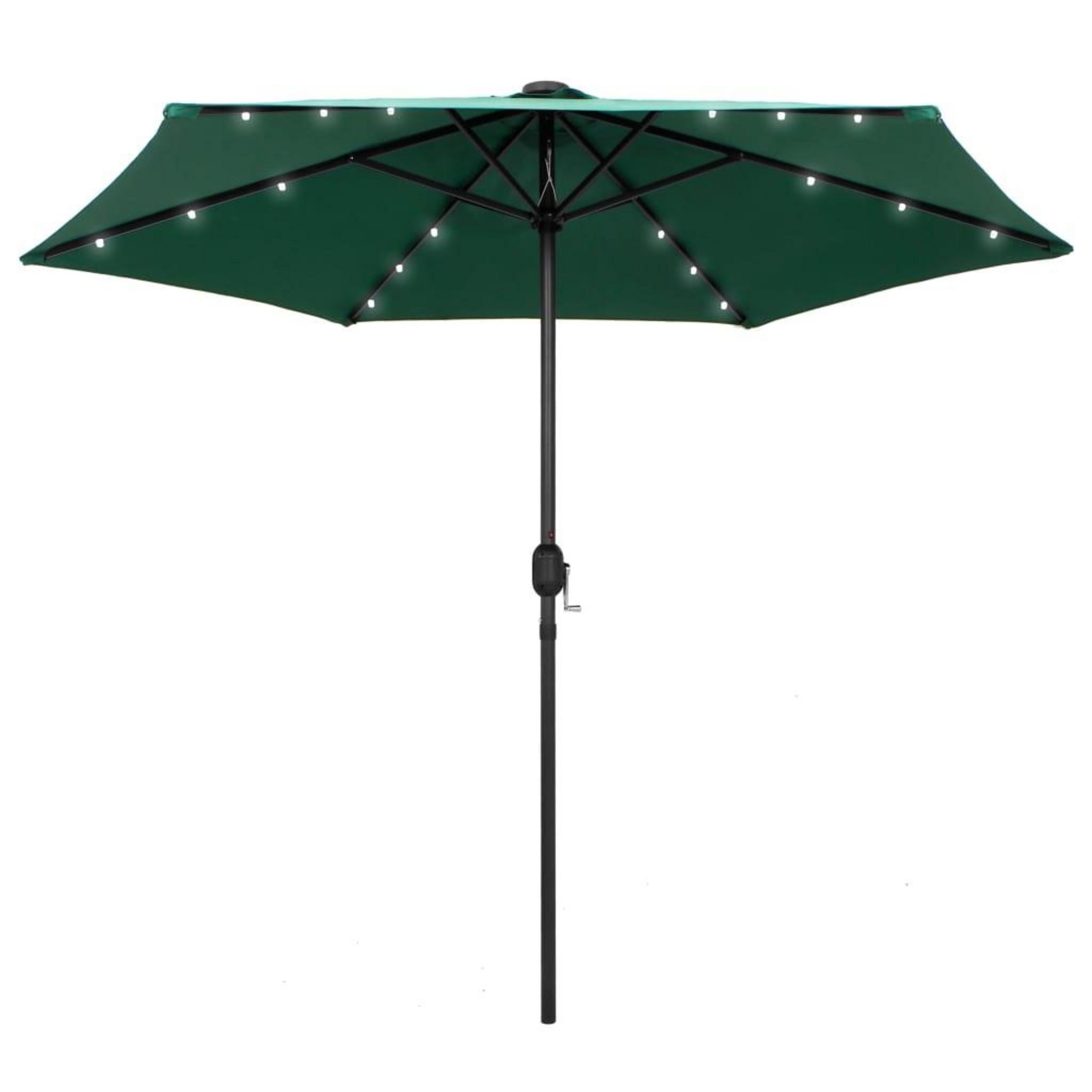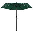 Parasol de jardin avec lumieres LED et mat en aluminium vert
