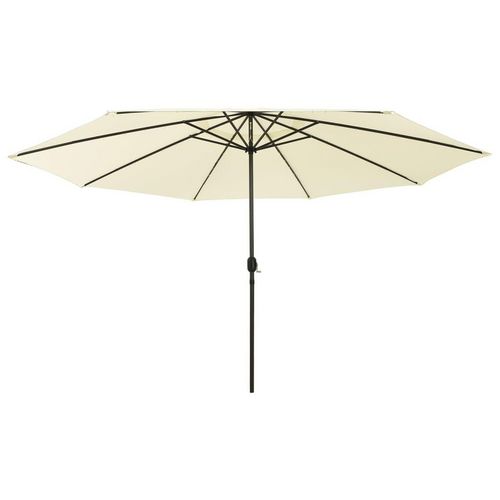 Parasol de jardin avec lumieres LED et mat en metal 400cm sable