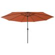 Parasol de jardin avec lumieres LED et mat en metal terre cuite