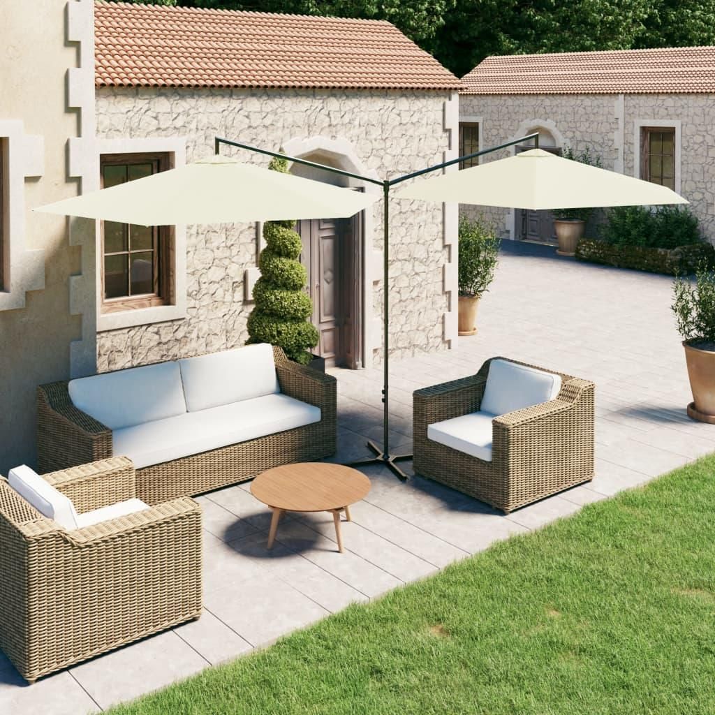 Parasol de jardin double avec mat en acier sable 600 cm