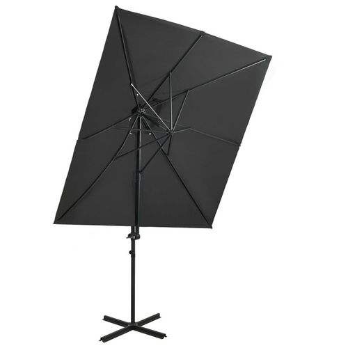 Parasol de jardin en porte-a-faux a double toit anthracite