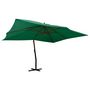 Parasol de jardin en porte-a-faux avec mat en bois vert