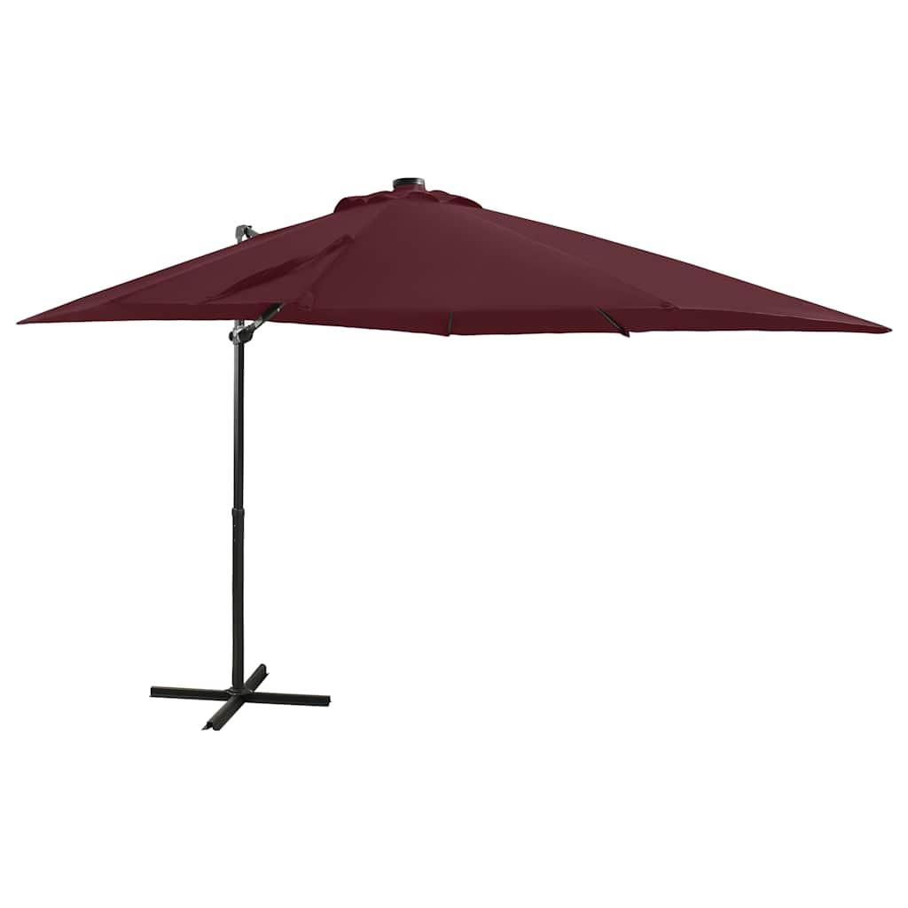 Parasol de jardin en porte-a-faux avec mat et lumieres LED