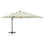 Parasol de jardin en porte-a-faux et mat et lumieres LED sable