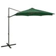 Parasol de jardin en porte-a-faux et mat et lumieres LED vert