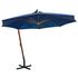 Parasol de jardin suspendu avec mat bleu azure bois de sapin