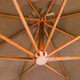 Fabriquee en polyester resistant aux UV et a la decoloration, la couverture de parasol vous offre une protection optimale contre le soleil. Le mat en bois de sapin massif, ainsi que 8 nervures de bambou robustes et une base transversale, assurent une grande stabilite. La toile est suspendue librement au mat, de sorte que ce dernier n'obstrue pas l'espace situe sous le parasol.