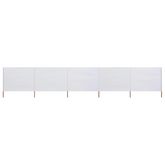 Notre paravent pliable a 5 panneaux a une longueur totale de 600 cm et une hauteur de 120 cm, il sera donc parfait pour vous abriter lors des jours venteux. Le paravent est fabrique dans un textile non tisse de qualite et est soutenu par des poteaux en bois qui le rendent durable pour de nombreuses