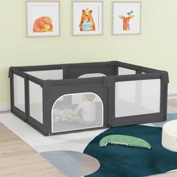 Parc pour bebe avec 2 portes Gris fonce Tissu Oxford