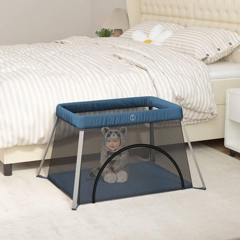 Parc pour bebe avec matelas Bleu marine Tissu de lin
