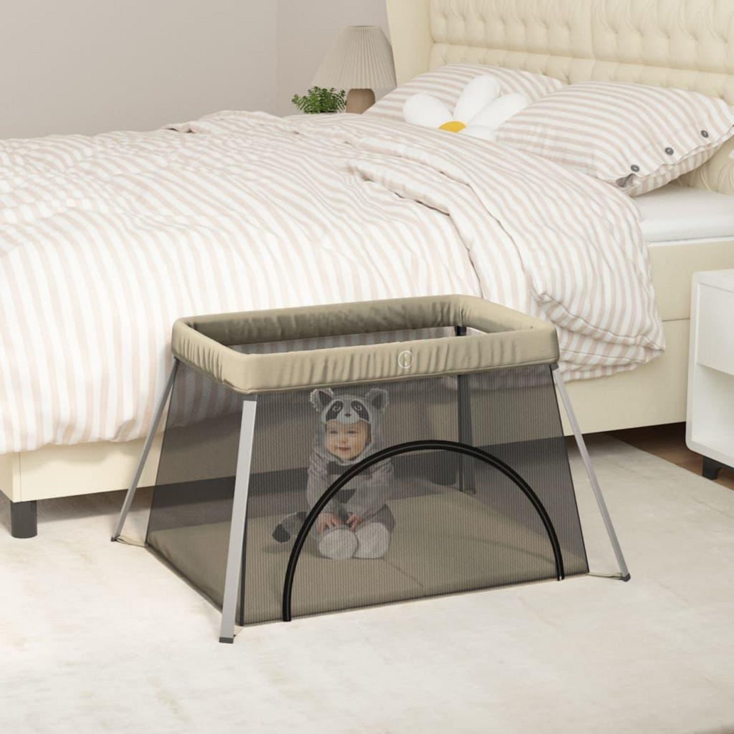 Parc pour bebe avec matelas Taupe Tissu de lin