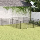 Parc pour chien 16 panneaux noir acier galvanise