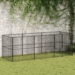Parc pour chien 8 panneaux noir acier galvanise