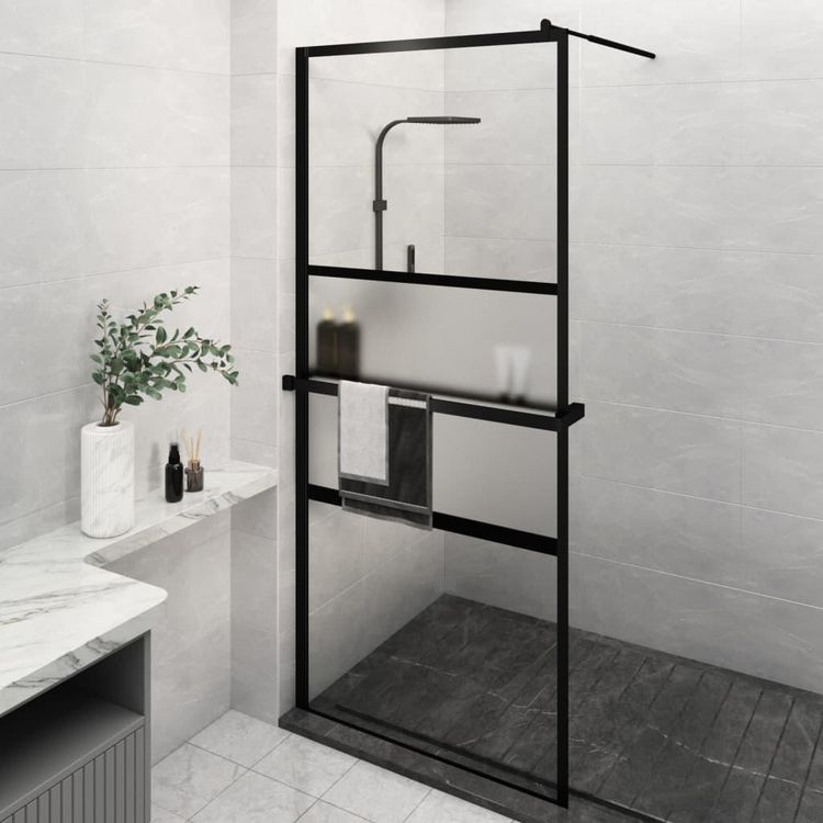 Paroi de douche avec etagere Noir 90x195 cm Verre ESG&Aluminium