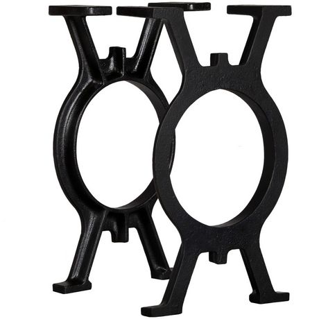 Ces pieds de banc sont faits de fonte solide qui a reçu une finition polie, peinte et laquee pour la durabilite. Ces pieds de banc robustes peuvent contenir un plateau de table lourd grace a leur conception en O. Avec ces trous pre-perces sur la plaque de montage, les pieds du banc sont rapides et faciles a installer sur le dessus de votre banc.
