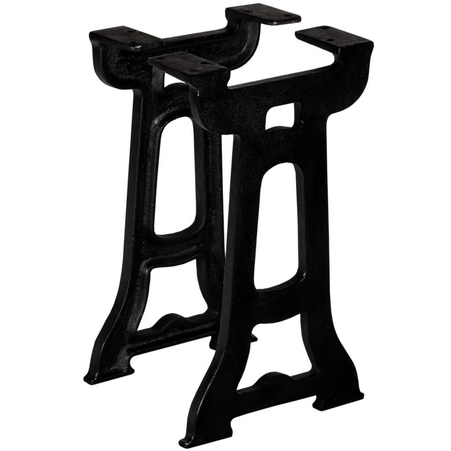 Ces pieds de banc sont faits de fonte solide qui a reçu une finition polie, peinte et laquee pour la durabilite. Ces pieds de banc robustes peuvent contenir un plateau de table lourd grace a leur conception en Y. Avec ces trous pre-perces sur la plaque de montage, les pieds du banc sont rapides et faciles a installer sur le dessus de votre banc.