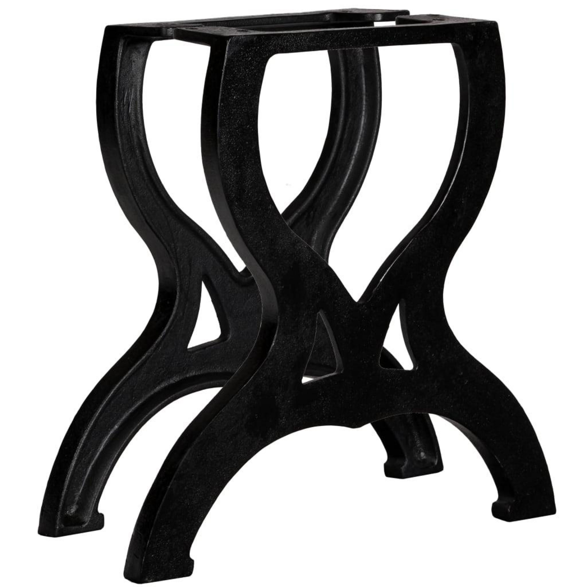 Ces pieds de table sont faits de fonte solide qui a reçu une finition polie, peinte et laquee pour la durabilite. Ces pieds de table robustes peuvent contenir un plateau de table lourd grace a leur conception en X. Avec ces trous pre-perces sur la plaque de montage, les pieds de la table sont rapides et faciles a installer sur votre table.
