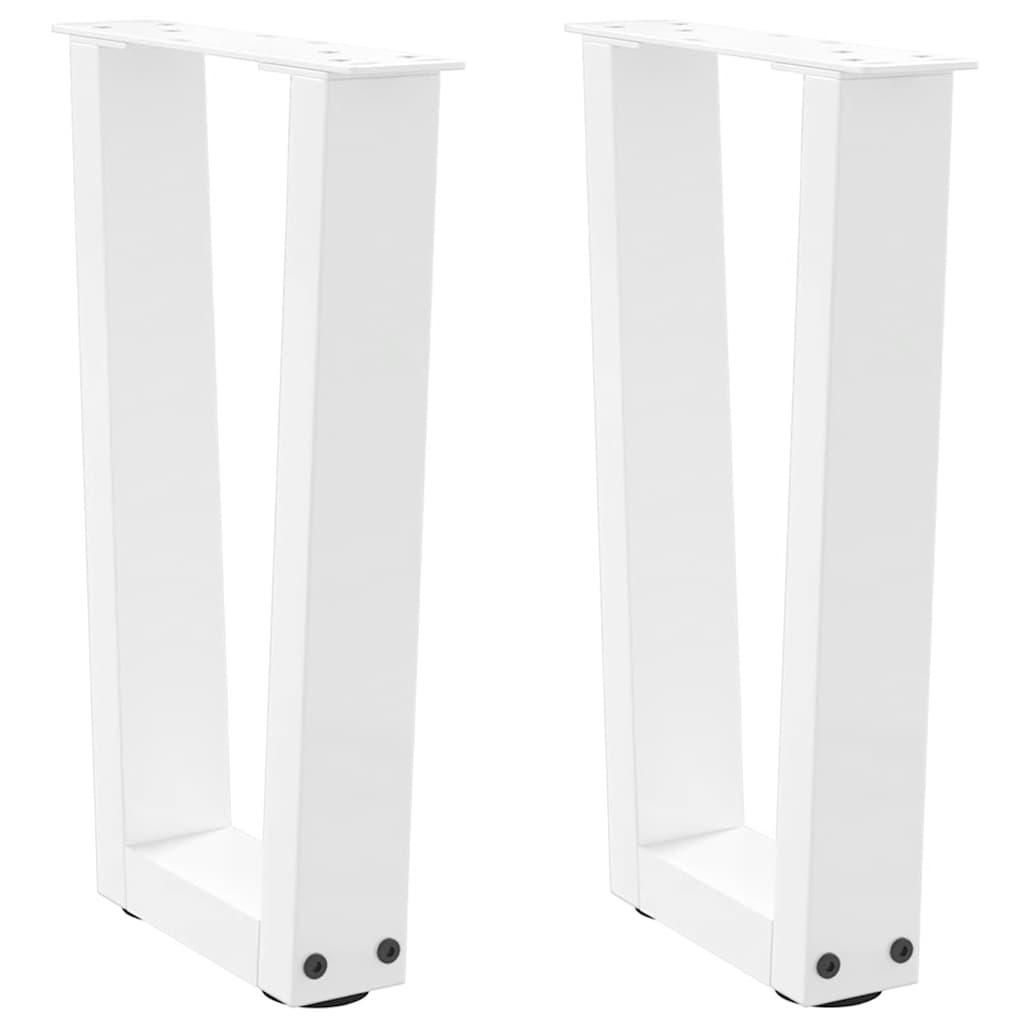 Pieds de table a manger forme de V 2 pcs blanc 38x(42-43,3) cm