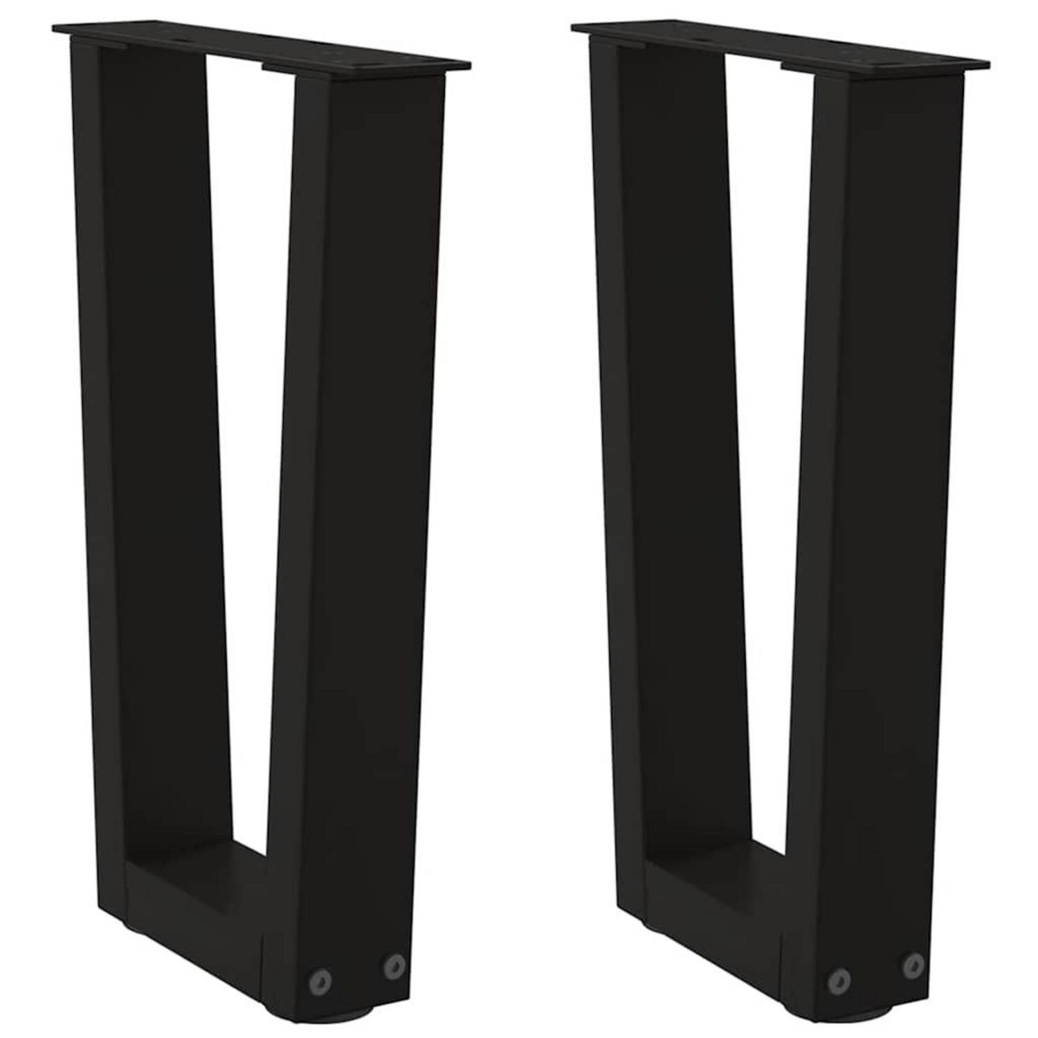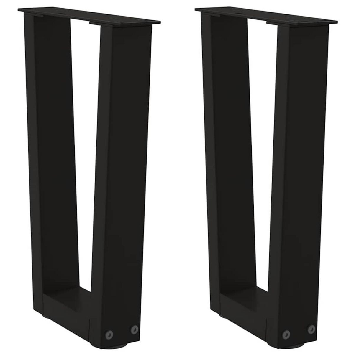 Pieds de table a manger forme de V 2 pcs noir 38x(42-43,3) cm