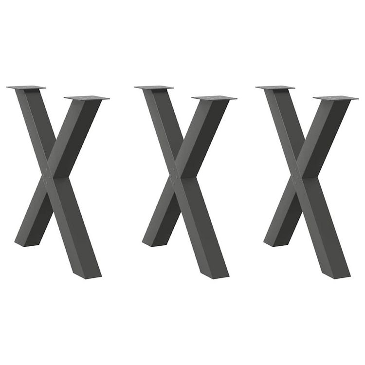 Pieds de table a manger forme de X 3 pcs 80x(72-73) cm acier