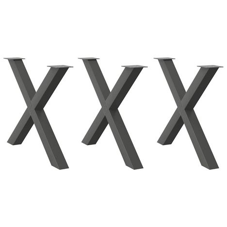 Pieds de table a manger forme de X 3 pcs 90x(72-73) cm acier